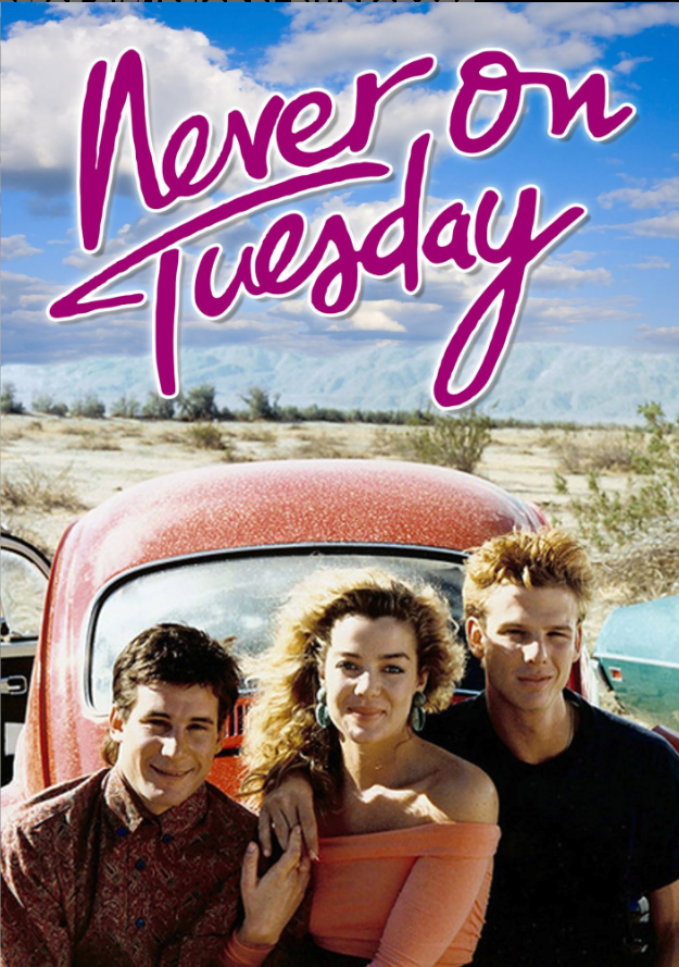 I didn’t plan on watching Never on Tuesday because the movie never made it to DVD, and because Nicolas Cage goes uncredited in it as the “Man in the Red Sportscar”; but I found the entire film on Youtube here so decided to at least watch the Cage-relevant scenes (really just one scene).