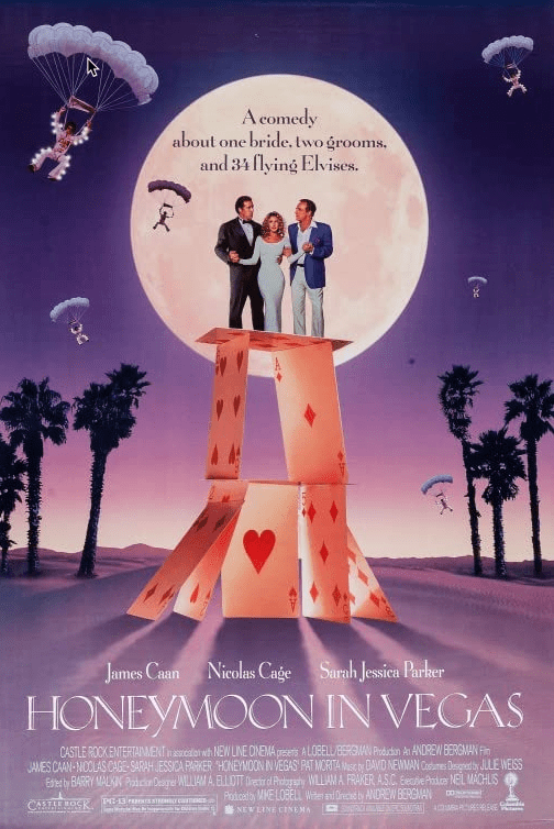 I graduated from high school in 1992, the same year that Honeymoon in Vegas came out in theaters. It was the only Nicolas Cage movie released that year (following the sole release of of Zandalee in all of 1991.) These were especially “slim times” for the prolific output of Cage, as he tends to make 3-5 movies a year on average. As was discussed in the last post, Zandalee was a bit of a boring slog, but Honeymoon in Vegas was a much more watchable (if somewhat absurd) romantic comedy that showcased Cage’s range and ability to carry a more mainstream Hollywood hit.