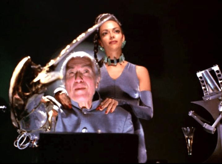 The movie also contains, bizarrely, a James Bond type villain, in the mark, Dr. Lyme (played by Phantasm-famed actor Angus Scrim). If this were a Bond movie, he’d probably go by the name Dr. Scissorhand (no -s) since one of his arms was a pair of scissors. No explanation was given. (Note: I’d had a few drinks and magic mushrooms prior to and during the watching of this film, and I had to go back the next day just to make sure I hadn’t imagined this character.) Confirmed, I had not had a hallucination.