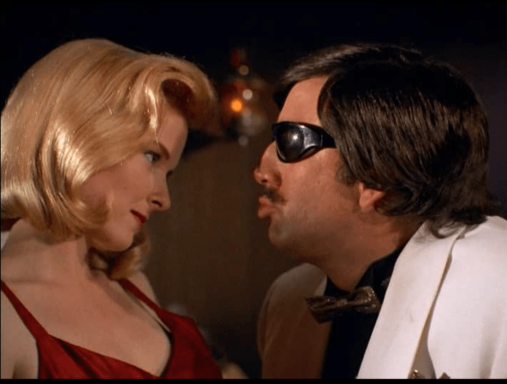 With his dying words, Mike tells Joey, that it’s his twin brother who “took the cake” from him which sets the entire plot of the film into motion. Wracked with guilt over his mistake, Joey heads to California to unravel the mystery of the stolen cake and to be reunited with his uncle, Lou (also played by James Colburn), who is a fellow con man, grifter, loyalty man. It’s here that Joey meets the erratic Eddie (played by Cage) who is supposed to be Joey’s muscle I guess, but who seems stylistically inspired by Sonny Bono. Joey gets caught up in the seedy underworld of Eddie and his girl, Diane (played by Sarah Trigger) and slowly begins to understand the meaning behind “the cake” that was stolen. Eddie exits the movie in spectacular fashion (we’ll get to it) and Joey gets into bed with Lou.