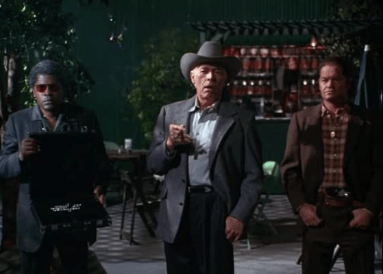 “Ok, baby girl. Who sent ya? Who sent ya?” Eddie to his assassin. Assassin’s reply: “Sam FUCKIN’ Peckinpah!” which is parroting back of what Eddie had said earlier in the strip club.