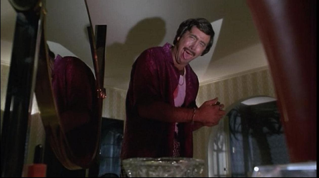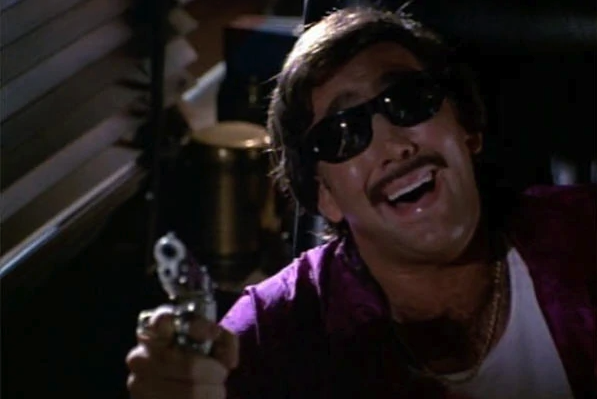 Eddie is the best and weirdest part of this movie. With his mustache, his big olive suit, and his sunglasses, he looks like a drug informant for Crockett and Tubbs on an episode of Miami Vice. If you take him seriously (which as I mentioned before, I’m not convinced we should be) you have to wonder what’s going on with his weird accent. In half of Eddie’s lines, he speaks as if he’s pressing his jaws/teeth together and not moving his lips like he’s a ventriloquist. At times this makes him sound slurred, mumbly, but at other times he almost sounds like his affecting an accent of some kind. Then, all of a sudden, he breaks out into a violent stream of expletives. (Watch em all on Youtube.)