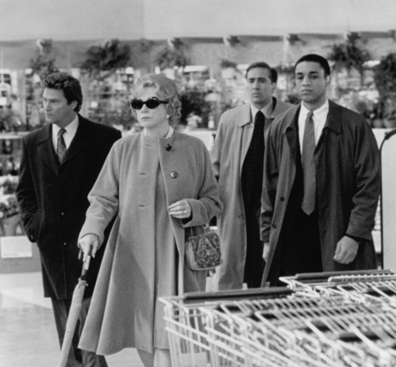 In an interview mentioned in the biopic book Age of Cage, Nicolas Cage refers to Guarding Tess as one part of his “Sunshine Trilogy” three cheery movies from the early 90s that also includes Honeymoon in Vegas and It Could Happen to You, in which he takes on the role of the good guy (played straight up and unapologetically.) If you haven’t gathered by now, playing the nice guy protagonist is a bit of a divergence from his normal roles as avant garde maniac, slightly unhinged outsider, and Elvis-inspired weirdo / mental case, but Cage builds his whole career on divergence from the norm, challenging himself as an actor, and taking on the unexpected character and script, sometimes on a whim and sometime with high intentionality.