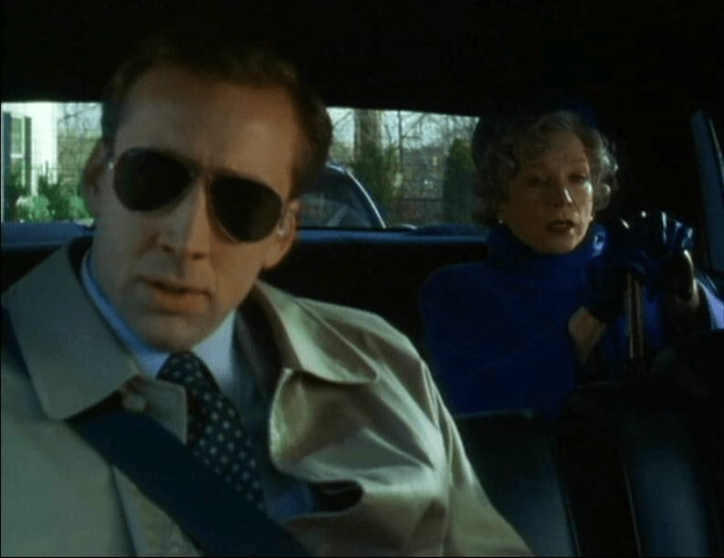 - When Chesnic comes unhinged a bit near the end of the movie (very Cage-like!) and forces the chauffeur to reveal the location of Tess by threatening (and following through) to shoot his toes off! “I’m going to count to five, and then I’m going to shoot off one of your toes!” Bad-ass and kind of funny.