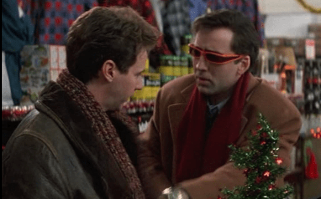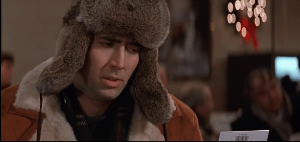 While this movie was not one of the three in his Sunshine Trilogy, Trapped in Paradise was a transitional movie at the tail end of them. His character seemed stuck between a rock and hard place. Bill wasn’t exactly a good guy (like Jack in Honeymoon in Vegas, or Charlie in It Could Happen To You) but he wasn’t really a deranged criminal (Eddie in Deadfall) or a comedically bumbling criminal (like H.I. McDunnough in Raising Arizona). His character felt a bit like an angry babysitter who decides to give in and let the middle school boys be boys while continuing to berate them and boss them around to keep them from getting too out of line. The combination of this somewhat unbelievable straight man playing along with the whims of his two buffoon brothers inside a such bad script made for a pretty muddled affair–it was neither a true holiday film, nor a legitimate heist film, nor a buddy road comedy. The movie didn’t seem to know what it was and neither did Nicolas Cage (it seems).