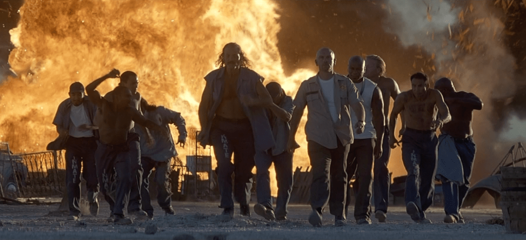 He is the alchemist for any film he is in, taking the raw materials he is given–the straw of a ludicrous script, the fire of an over-expressive technique, the water of a variable cast of characters / roles–and by shear force of charisma/will and black magic, he transforms and solidifies the parts and catalyzes his character into pure gold. It’s a sort of magnetism as well. Even with this cast of actors, all eyes eventually turn back to Cameron Poe–