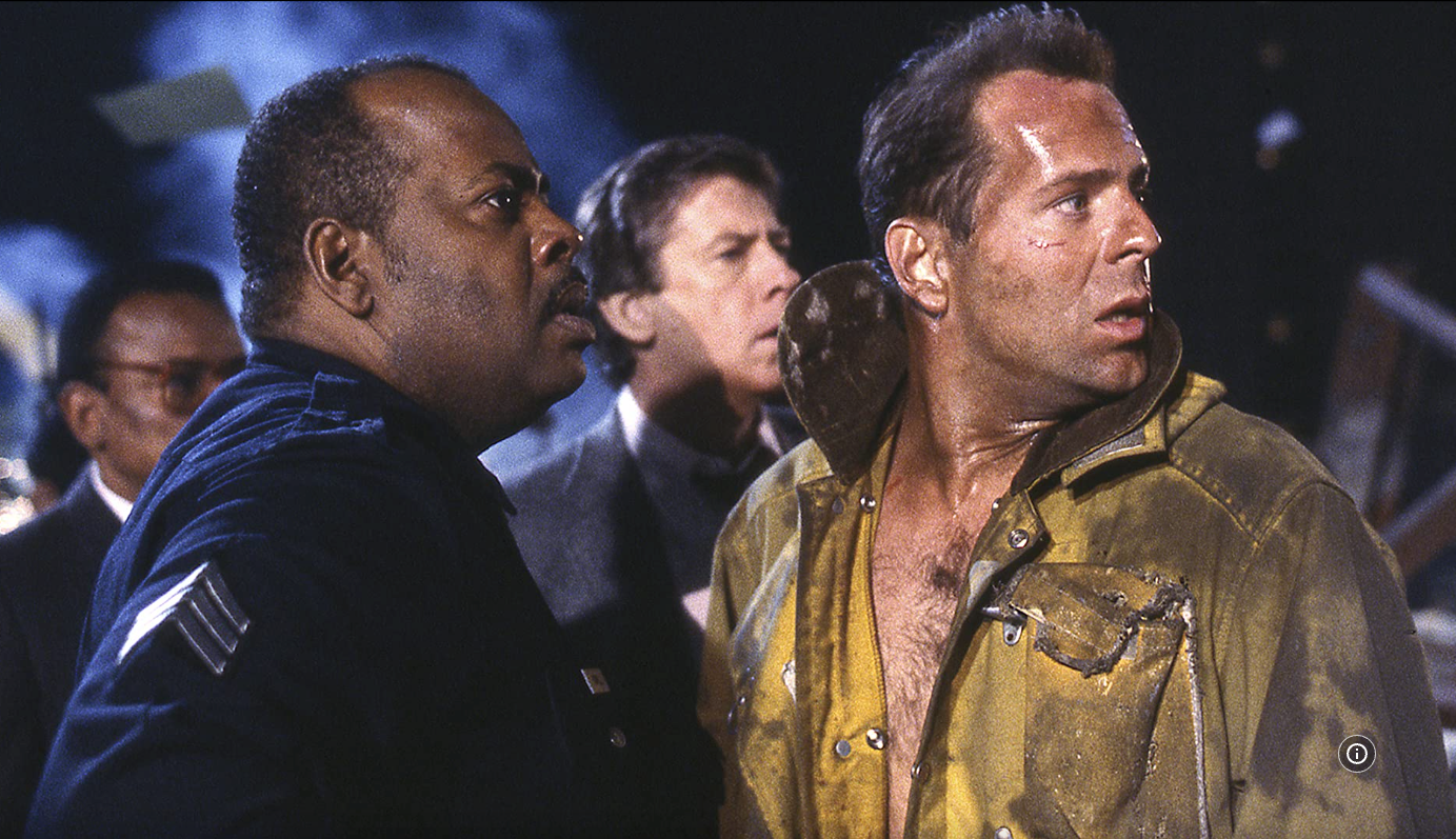 Poe works with his captors as a mole, but sends messages back to his confidante on the outside (Agent Larkin) who trusts that he is “their man on the inside.” McClain talks with Sergeant Al Powell and convinces him that there is a terrorist attack under way–he has to convince him much like Larkin has to convince Agent Malloy and the U.S. marshals.