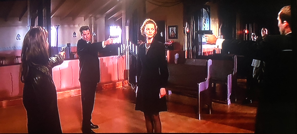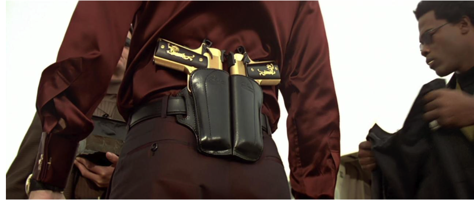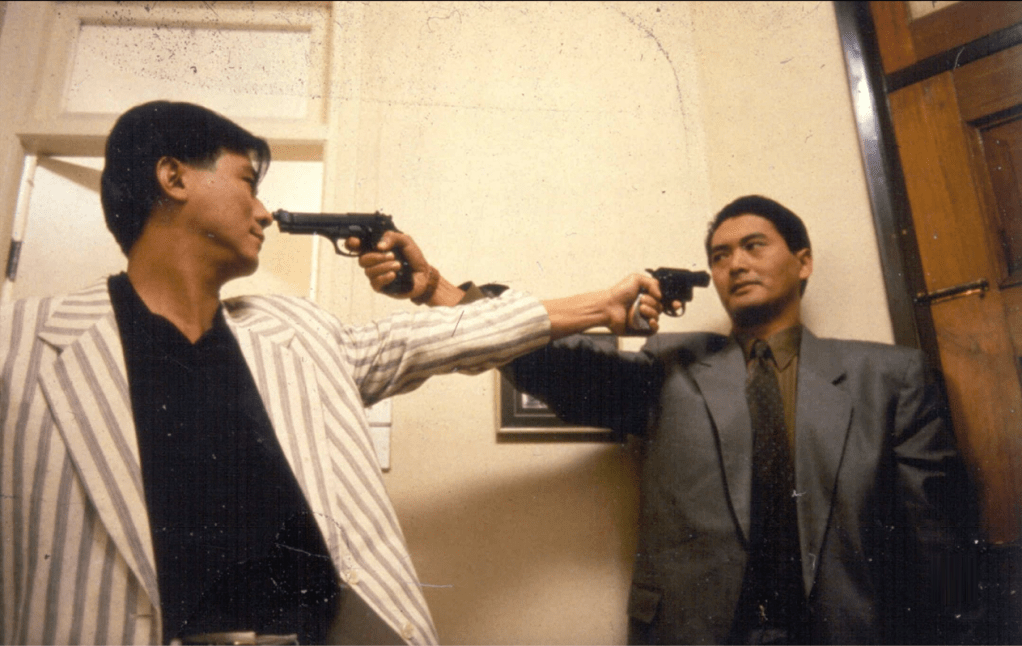 Woo was also well-known for the “stand off” sequences where multiple people (a room full) are holding 1 to 2 guns and aiming those pieces at each other’s faces in a seeming triangulating stalemate that usually ends in a bloodbath.