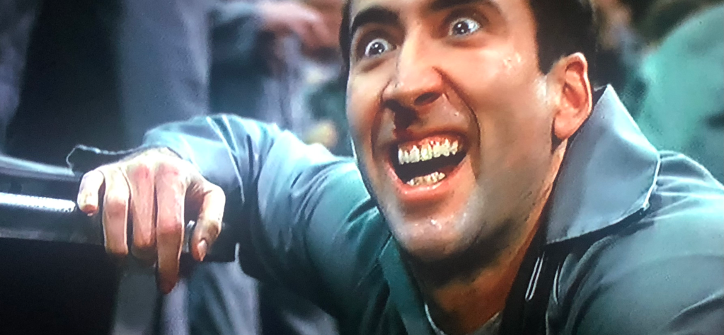 - Nicolas Cage getting to play John Travolta and John Travolta getting to play Nicolas Cage. Even with the characters (Castor and Sean) getting in the way, it was cool to see the mannerisms each of them took to “act” out the other. Nic did a really good job of making the pained / wincing expressions of Travolta.