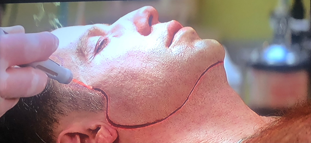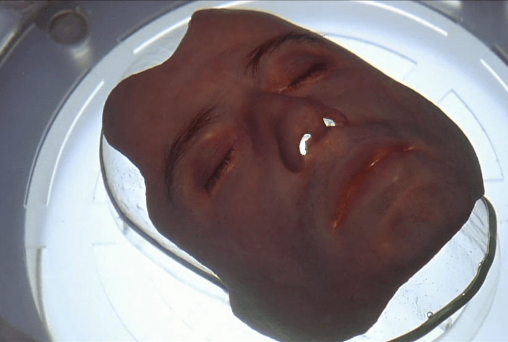 Enter the lab coats and the miracle of bio-tech surgery. With the help of fancy lasers, physical alteration / augmentation software, adbominoplasty, Great Clips, and a clear skull-shaped skin mask, the Scientist guy offers to carefully remove Sean’s face and replace it with Castor’s–lickety split.