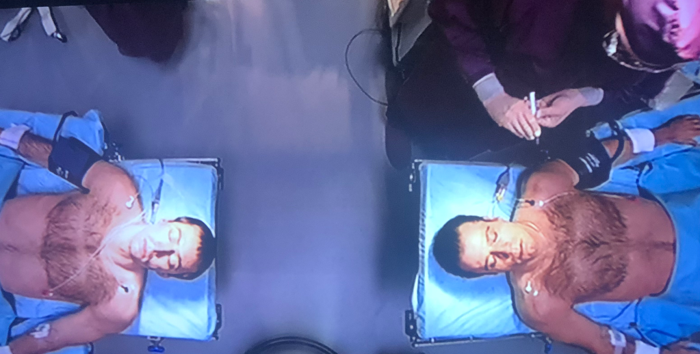 In addition to the seamless physique and facial swap, those that brought you “Science!”, also offered to plant a chip that would allow Sean to speak with Castor’s exact voice. In spite of his very reasonable reservations, Archer agrees to this devil’s bargain (taking on a deep cover mission he could reveal to no one, not even his wife) of posing as Castor to convince Pollux to reveal the location of the bomb and hopefully a way to defuse it.
