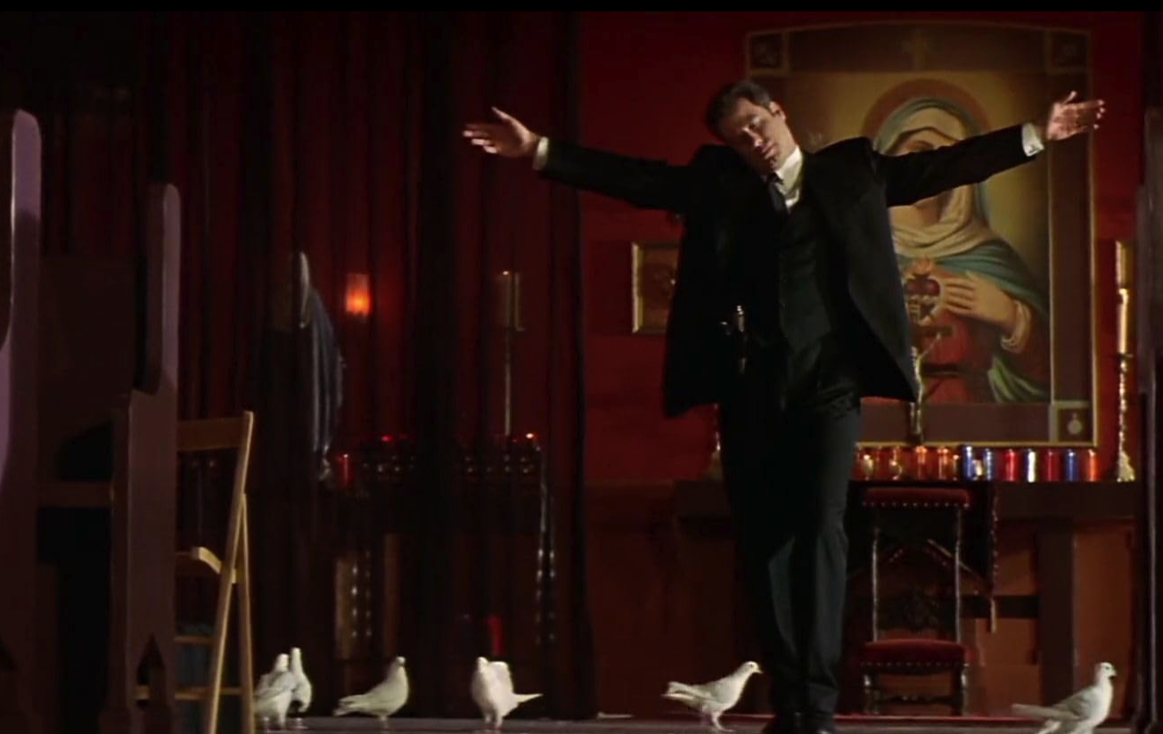 - Playing both a debauched priest and a devout Catholic in the same movie