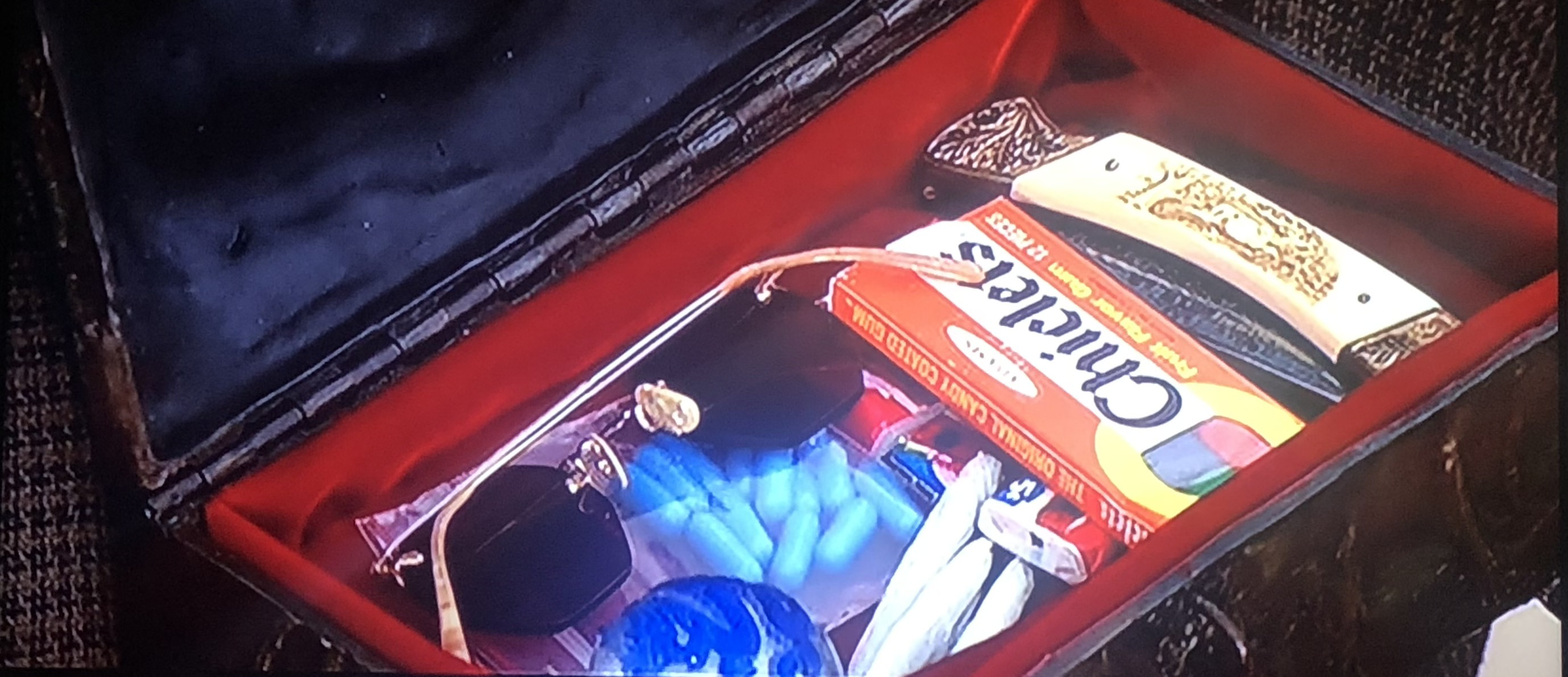 - Castor’s box of goodies. Guns, sunglasses, pocketknife, Chiclets, joints, pills, other personal effects.