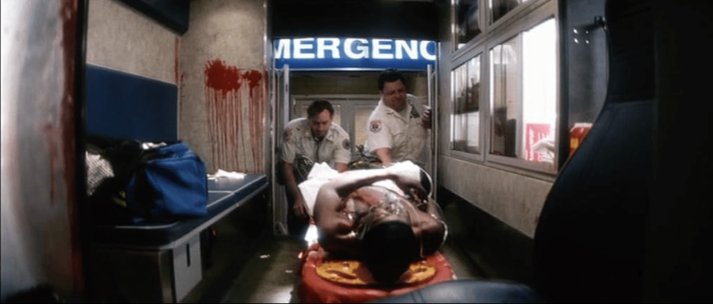 You get an idea above of what Frank went through (list above), but, thankfully, he didn’t go through it all alone. That would truly be hellacious. Frank had some flawed but faithful fellow pilgrims, guides, and tempters who journeyed the dark nights with him. Through the plight of the ambulancing we get three unique views / counterpoints into Frank’s character and his breakdown in Larry (John Goodman), Marcus (Ving Rhames) and Tom (Tom Sizemore). I like to think of them as either the Trinity of Father, Son, and Holy Spirit (keeping with the religious themes) or as Scrooge’s ghosts that visited him three nights in a row.