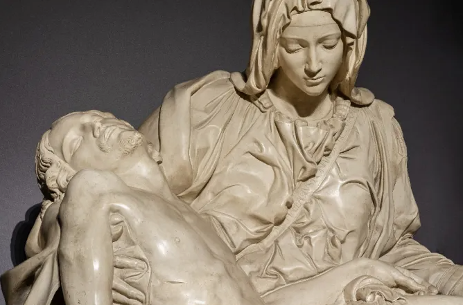 The last scene shows Frank in a halo of light, resting on a bed with Mary. He lays his weary head against her chest as if he will finally find the oblivion of sleep he has longed for so many nights. While this Mary may be Frank’s lover, in this last scene of holy passion, Frank is the dying Christ in Michaelangelo’s Pieta, and Mary is his mother. Readying themselves for a resurrection.