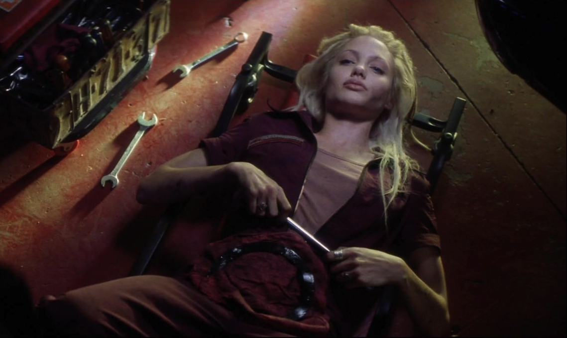 The rest of the movie is kind of like Ocean’s Eleven (or The Magnificent Seven I guess, or wait, Seven Samurai ah, nevermind) where Memphis must assemble a all-star crew of specialists, former car thief associates like Otto Halliwell (Robert Duvall), Donny Astricki (Chi McBride), Sara “Sway” Wayland (Angelina Jolie), and the mute and enigmatic enforcer The Sphinx (Vinnie Jones) who all must chip in to help Memphis steal the fifty cars, all in one night, while evading detection, the pursuing police, rival gangs, and the looming timeline of the deadline (and the deadline keeper himself, the violent and unpredictable Calitri).