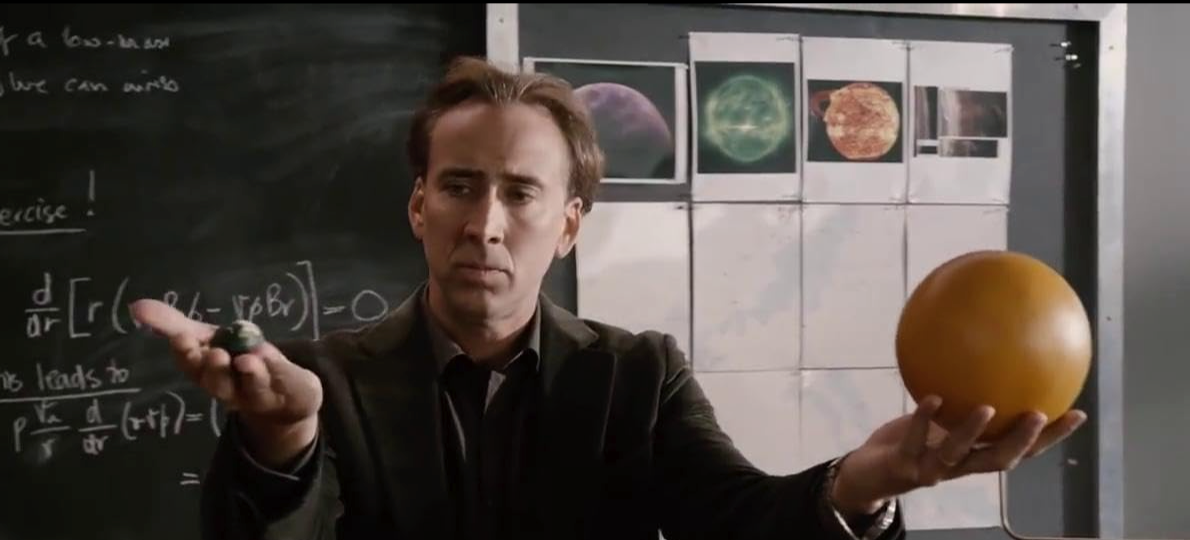 Flash forward fifty years, to the opening of the time capsule. Astro-physicist (widower) John Koestler’s (Nicolas Cage) son Caleb attends the same school as Lucinda and ends up with her letter, and is a bit bummed that he didn’t get a cool picture like the other kids but a series of “random” numbers. Caleb brings the letter home for further study, and John discovers it. After consuming his nightly grief-filled bottle of whisky, John starts to take a closer look at the numbers and discovers an unsettling pattern.