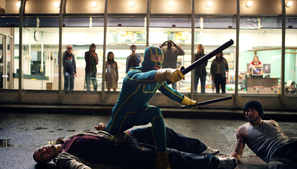Kick-Ass (2010) is a black comedy super hero film based on the Marvel comic of the same name. Directed by Matthew Vaughn (Lock, Stock, and Two Smoking Barrels, Snatch, and Stardust) the movie features a group of teenagers who are interested in learning how to fight crime as masked crusaders.