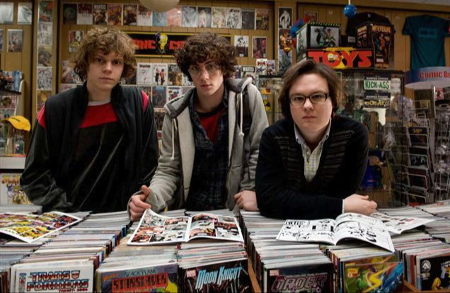 In this first movie, (and yes, there is a sequel) the plot focuses on only one of the teenagers who makes the move into the super hero life. High schooler Dave Lizewski, who goes by the pseudonym Kick-Ass, buys a scuba costume online to hide his face / identity, and heads out into the tough city streets to locate missing cats and protect “innocent” victims from injustice and gang violence. Most of the violence in the beginning the film comes in Dave getting his ass kicked, rather than kicking ass, but with every valiant attempt Kick-Ass makes he gains momentum in the public perception as his video escapades go viral on his “Myspace” account. As his popularity blows up with well-wishers and super hero requests, so do the stakes.