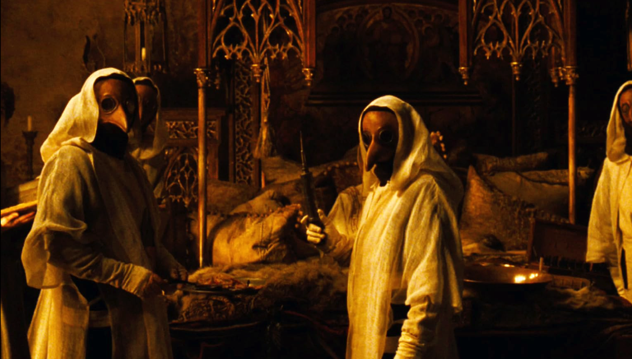 Again, SotW explores what death means in a similar fashion (timeline) to The Seventh Seal, and how it comes indiscriminately for the innocent and the guilty alike, but it ultimately doesn’t provide any conclusion or resolution. Yes, Behman and Felson sacrifice themselves in the end for “the innocent” as some form of penance for all those they killed in the Crusades, but the philosophical implications are never realized. It feels much like a horror film where the evil was destroyed and the survivors were just “the last ones standing”. There’s no real exploration of human merit or redemption and very little exposition on whether or not the Church was even justified in trying to seek out and destroy the “supernatural evils” of witchcraft. If anything, the ending actually unintentionally supports this horrible practice–i.e. The witch wasn’t a witch but she very much was possessed by evil, therefore, torturing and killing those suspected of such things is a reasonable way for humans to behave. Kind of a “see, told you so” message just feels weird in this situation.