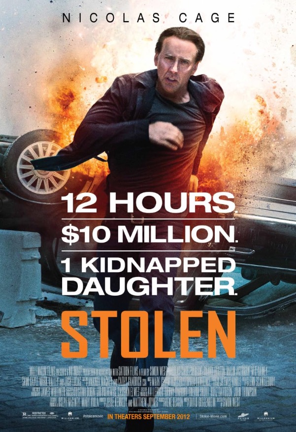 The movie Taken (2008) starring Liam Neeson was Stolen (2012) by Nicolas Cage, or rather, the director Simon West. Although I’ve never seen Taken it is one of those films that has made its way into the collective conscious of our current pop culture. Liam Neeson plays a CIA agent who is “a man with a particular set of skills” which I’m assuming means he has weapons, contacts, money, and violence at his disposal, and he is prepared to use those skills to free his daughter from a kidnapping in Paris. This ransom movie did well in the box office (I think) and cemented a franchise for Neeson.