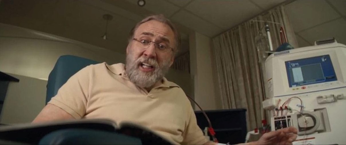 - Fun to see Matthew Modine in this film playing Gary’s kidney doctor. He lends him money to buy the boat that he sails from San Diego. We haven’t seen Cage and Modine together on screen since they were both very young pups (1984) in Birdy. More than thirty years have passed in their acting careers.