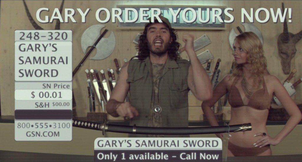 - Buys a samurai sword for 1 cent and plays fruit ninja (RL version)