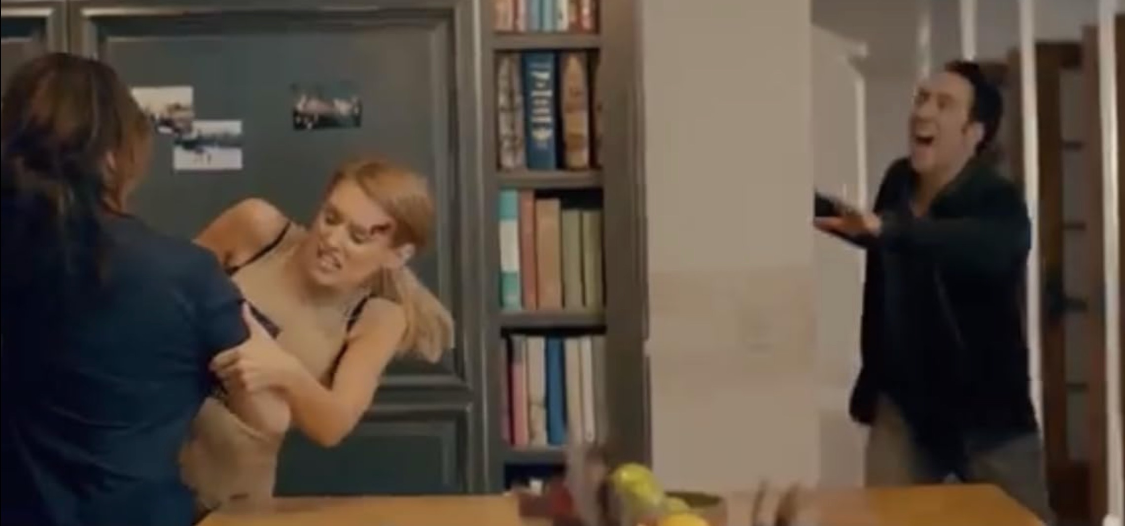 As is common for this family “thriller” genre, Kelly gaslights the family and convinces everyone that Angela is a drug user and coming unhinged even going so far as to stab herself and blame it on Angela’s jealousy / mental problems.