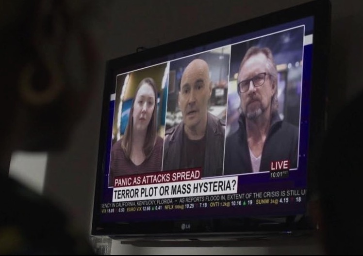 I can almost hear The Talking Heads Once In A Lifetime playing as soundtrack for this scene (even though the punk aesthetic of Reagan Youth’s Anytown and Brent’s Misfits T-shirt was a right, and savvy decision.) In some ways, this violent anger that seethes under the surface of Brent’s waking life is merely unleashed and embodied through the “terrorist” activation that has lead to these horrific events. The levee has finally broken, and we are just seeing Brent as his rawest, truest self–untethered from all moral constraints. Strangely, the act of trying to murder his children is a vengeful act for the perceived (but not real) injustices he has suffered for becoming a father. It’s much like Vengeance: A Love Story but without any real justification. Just blind rage.