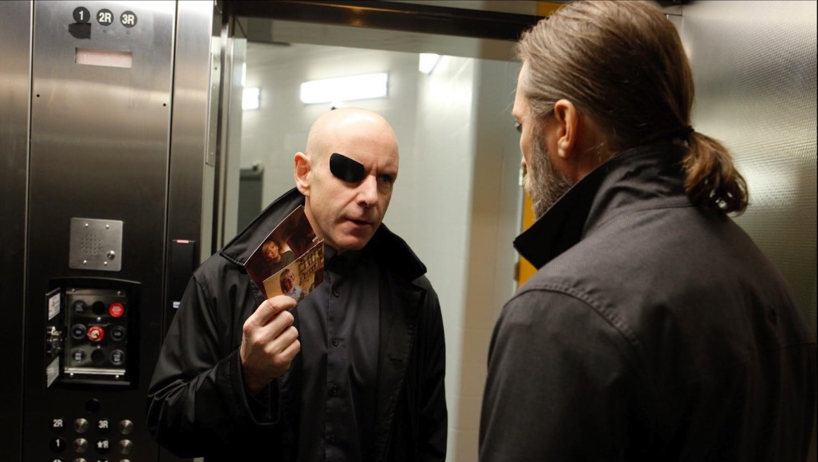 - In a movie with a villain who wears an eyepatch (Deadfall)