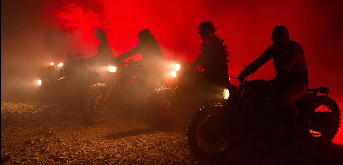 Brother Swan, who is the ever-devoted supplicant of Jeremiah, makes a bargain with The Black Skulls in exchange for their muscle. The monstrous bikers, who are more similar to the Orcs / Ringwraiths from Lord of the Rings than the hardened bikers in Sons of Anarchy, are offered super strong psychedelics and a human sacrifice for their assistance in neutralizing Red and abducting Mandy for Jeremiah.