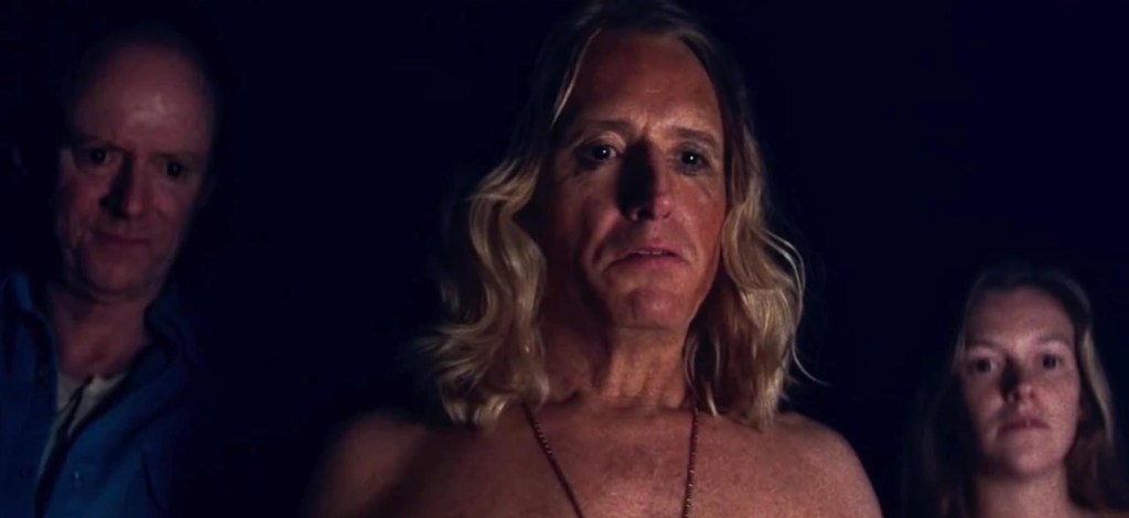 The trouble starts as Mandy walks a lonely road from their cabin in the woods to her place of work–a gas station and convenience store. She is spotted by a passing van–that holds a cult family (think the Charles Manson family), and their psychopathic cult leader, Jeremiah Sand (Linus Roache). Jeremiah, who believes God has made him his heir-apparent on this mortal plain, is smitten by Mandy whom he believes he must possess as part of his growing entourage of drugged-out hippies, mystics, and thugs.
