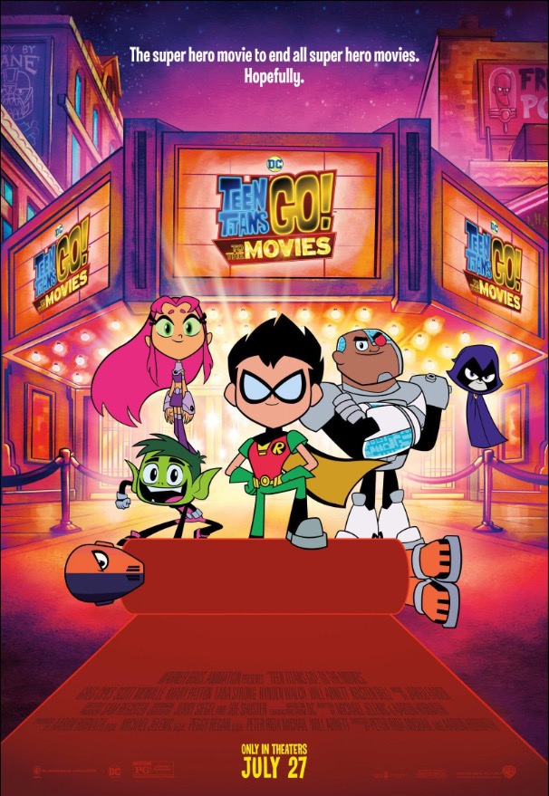 Teen Titans Go! To the Movies (2018) is a Cartoon Network / DC comics produced film targeting kids ages 7+. While I am familiar with the adult version of Titans starring Robin, Cyborg, Starfire and others, I was not familiar with this kids cartoon before watching it. It’s whimsical, satirical, and self-referential, but still firmly targeting a pretty young audience. I’m sure I would have been a fan of the cartoon series when my children were younger had it been available then, but it was well after their time.