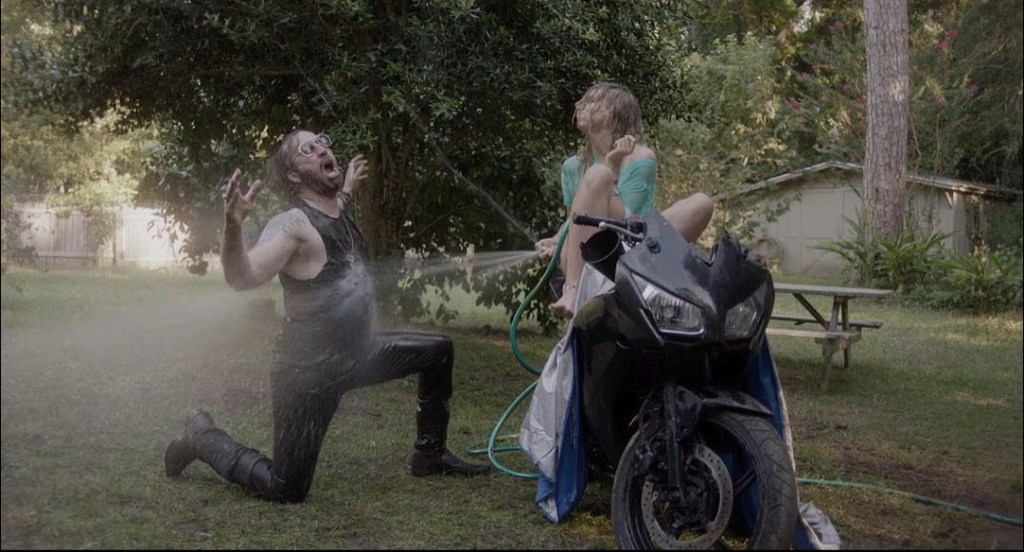 - When he water dances like he’s in a wet Tshirt contest under the garden hose while Billie sits on his motorcycle spraying him.