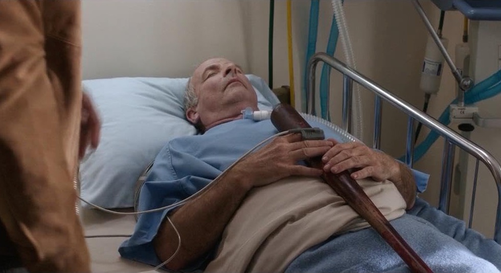 Frank gets released from prison because he has fatal sporadic insomnia which can cause hallucinations and if prolonged and untreated can kill the sufferer. Frank is met by his son Joey (Noah Le Gros), a recovering heroin addict, outside the prison. After an awkward and tense reunion, the two return to Frank’s hiding place where he left the bloody bat used to commit the murder (years prior) and a tote bag full of cash.
