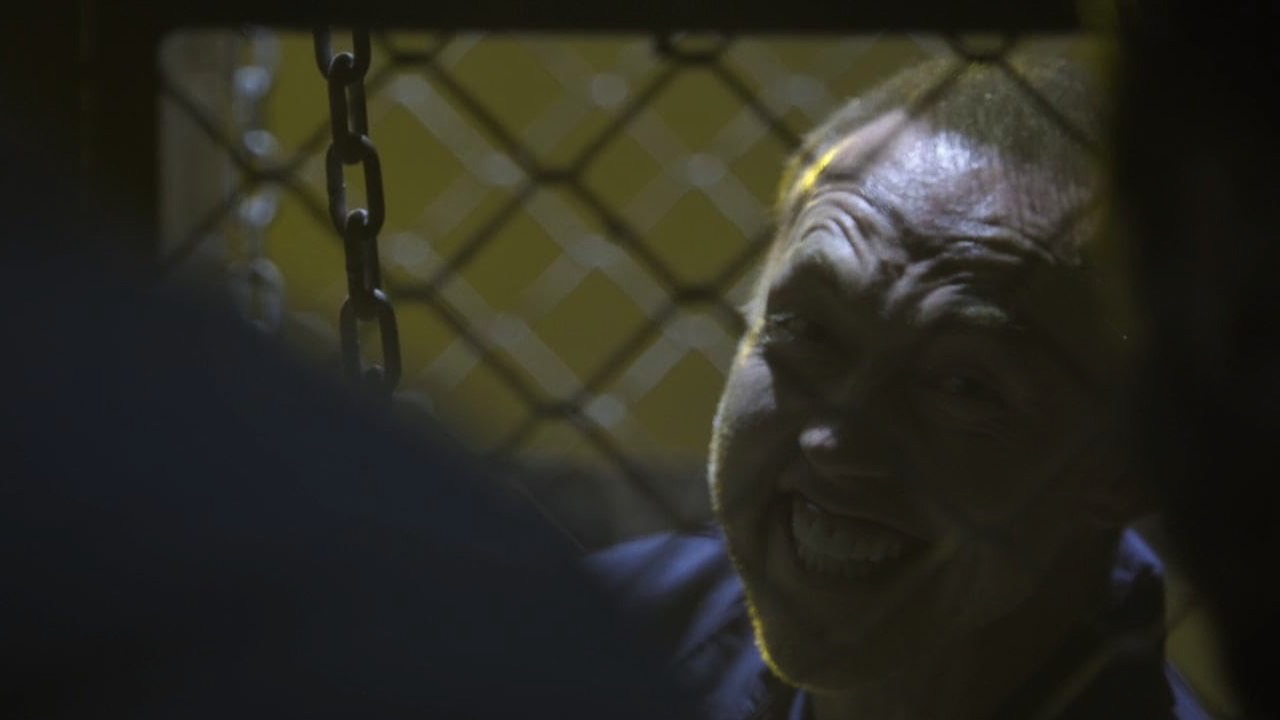 Loffler, who has a lot in common with Hanibel Lechter it seems, is held in a cage within the cargo area where he is also chained to restrict mobility.