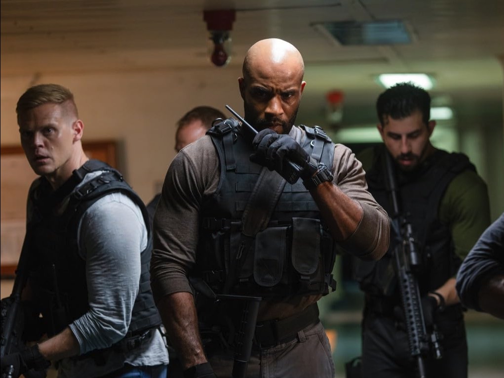 Before setting sail en route to Puerto Rico, a gang of U.S. Marshall’s lead by the hard-nosed Marshal John Ringer (LaMonica Garrett) board the ship, the Mimer, to transport a very dangerous military prisoner Richard Loffler (Kevin Durand) who requires constant guard and surveillance. Loffler, who is a certifiably crazy and dangerous military assassin, has a rare health condition that may cause seizures or death if the atmospheric pressure changes even slightly. We know this because two people accompanying the Marshall’s entourage are Naval officer and psychologist Dr. Ellen Taylor (Famke Janssen) and U.S. Attorney general Paul Freed (Michael Imperioli).