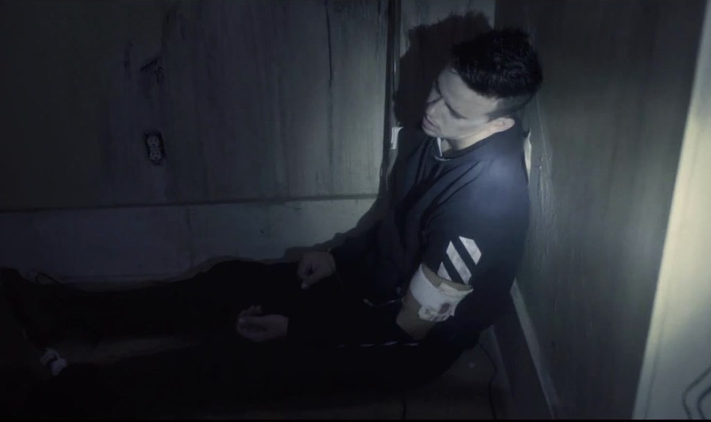 Buddy ducks into a different room and discovers a nearly dead person hooked into an IV drip (likely the teenager who was shot by Walter in the beginning of the film). The young man is so drugged he can barely speak but whispers to Buddy that he needs help and that there are others in the house.
