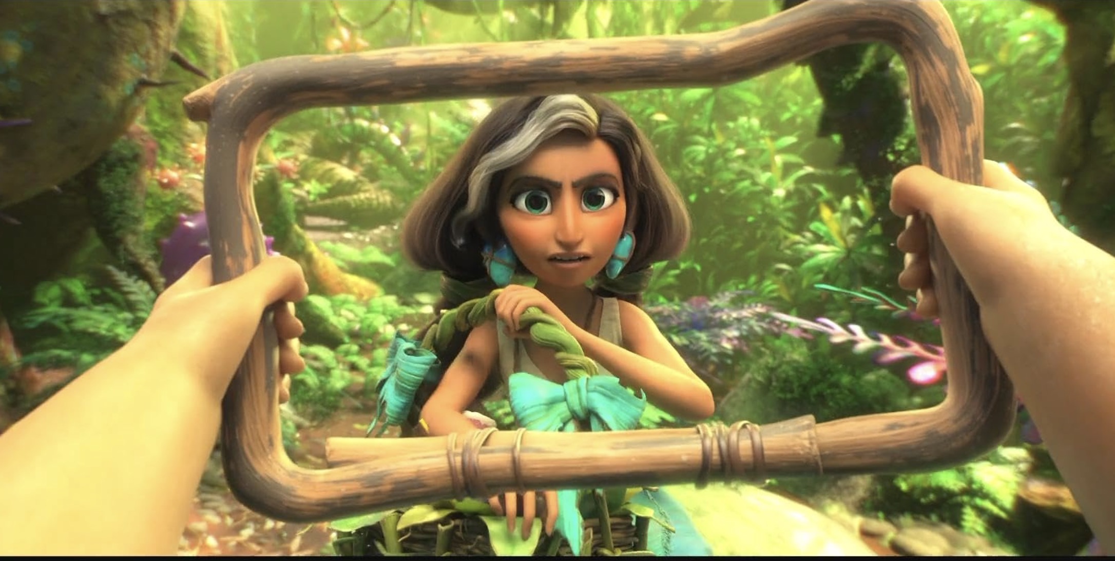 Picking up where they left off in The Croods, the loveable rag-tag caveman family are in “Tomorrow land” looking for a new place to settle (after their home was destroyed in the first installment). The film opens with Guy’s backstory–he was orphaned by his parents when disaster struck and told to keep walking until he found “tomorrow” land on the horizon. The tension between Grug and Guy continues as Eep and Guy continue to get closer and closer (as boyfriend / girlfriend situations have from time immemorial) and desire their own privacy and essentially to start their own family. As defined by Guy (I think) privacy is the place in which you “only smell the feet you want to smell.”