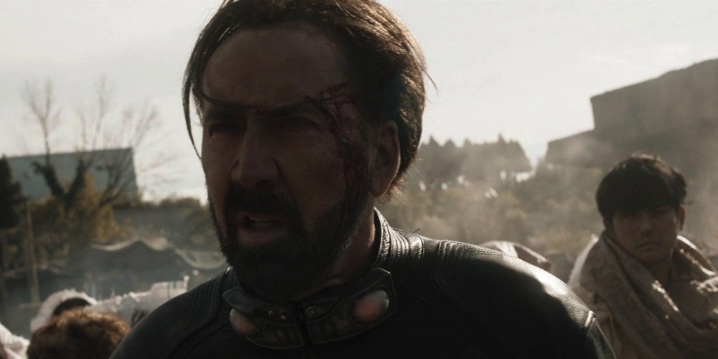 *Also, for the fans of Army of Darkness (Bruce Campbell) like me, I’m finding more and more correlations between that somewhat comedic character and the more serious minded Nicolas Cage characters (i.e. Hero). In this film, we have a guy who rallies the outlanders who has a sword for a hand, much like Ash rallying the medieval “deadheads” with his chainsaw arm. Might be a more detailed post on this before the end of the WATC(H). We shall see.