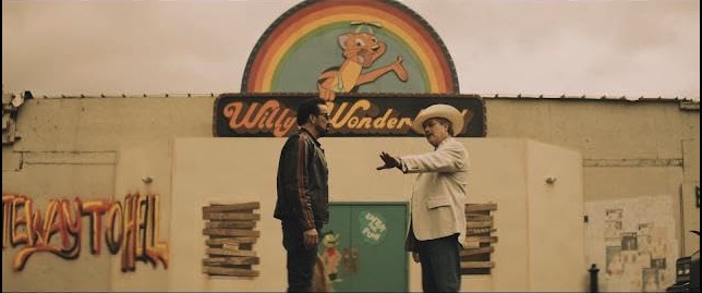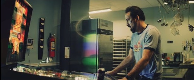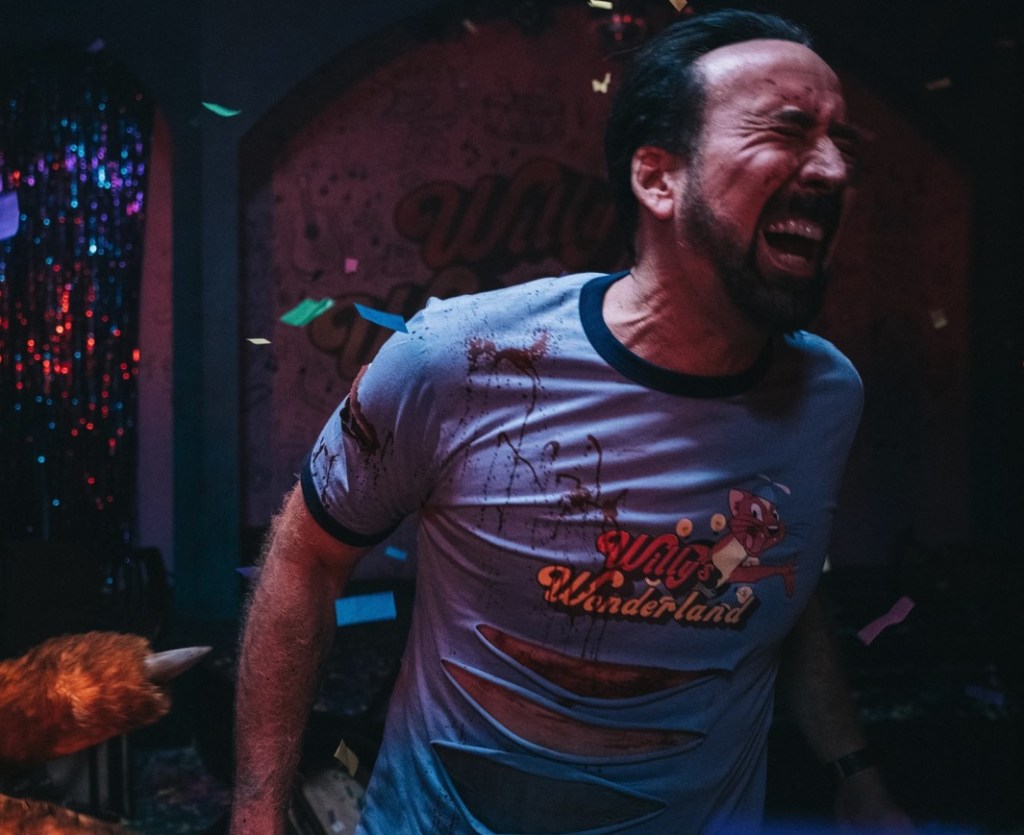 Enter the dark and quiet stranger known simply as The Janitor (Nicolas Cage). Driving through the town he gets an (intentional) flat tire brought about by the Leaders, and finds he cannot pay the cash required for the repairs. So he accepts a deal offered from Jed / Tex that he will clean up Willy’s Wonderland overnight in exchange for his fixed car in the morning.