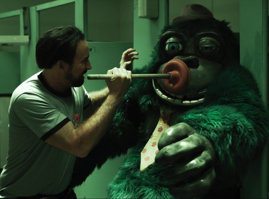 Although he says NOT A SINGLE LINE in this film, Nicolas Cage is the perfect actor for this type of bonkers film because he often plays an erratic, quirky fighter of a guy who takes full advantage of his “action film” status but employs it with an over-expressive style that hinges on the melodramatic. If he weren’t such an expressive actor, with his face, mannerism, and body, the “intentional mute” role would have fallen pretty flat other than seeing a man who takes his job seriously while also fighting and killing 8 animatronic monsters while never missing a break (or a beat). This is a horror comedy and Nicolas Cage makes both work well together. Like peanut butter and jelly.