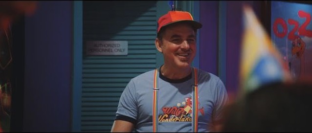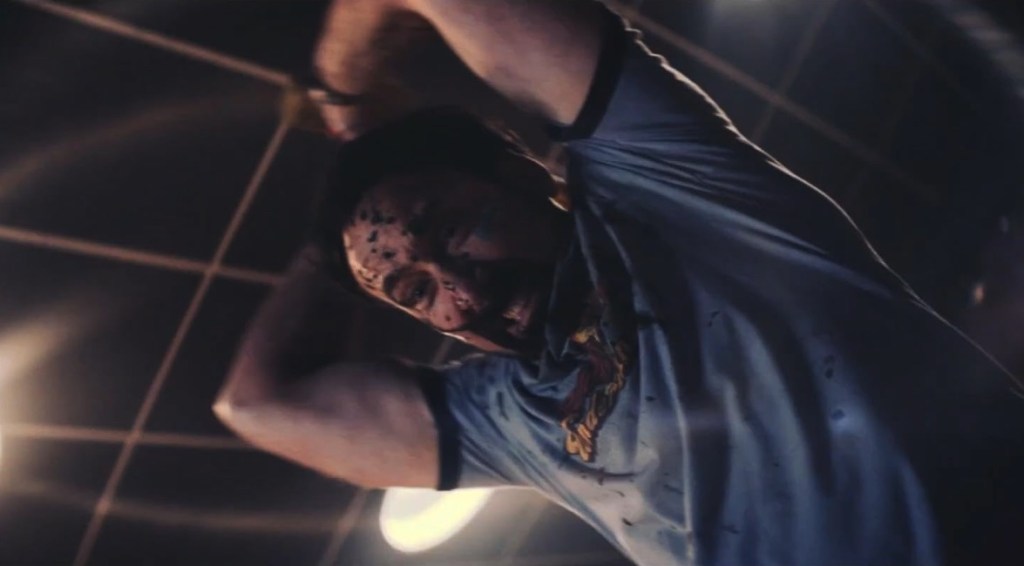 It’s hilarious. What’s also hilarious is that he doesn’t seem overly bothered by the fact that he’s been set up by the town leaders, that this isn’t even a real job (but a decoy for feeding time), and that escape was always possible for him. He seems to actually be enjoying himself–changing shirts each time one gets soiled with the bloody remains of Willy’s Wonderland.