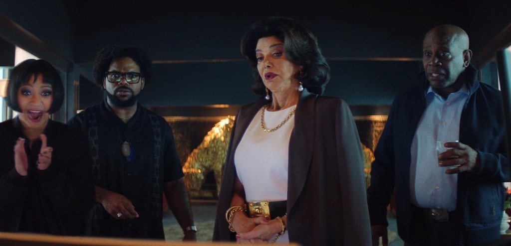 While trying to find morally questionable victims (street thugs and drug dealers) for Dracula’s resurgence, Renfield ends up crossing paths with and having to fight off a violent gang who have infiltrated and basically taken power over the city of New Orleans. The family that leads this crime syndicate (and the corrupt police force they control) is the Lobos, lead by the ruthless matriarch Bellafrancesca Lobo (Shohreh Aghdashloo) and her goofy, hubristic son Tedward “Teddy” Lobo (Ben Schwartz).