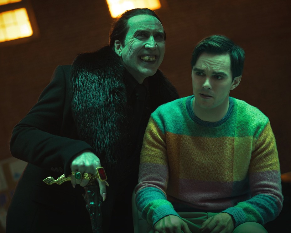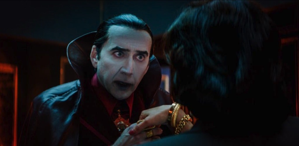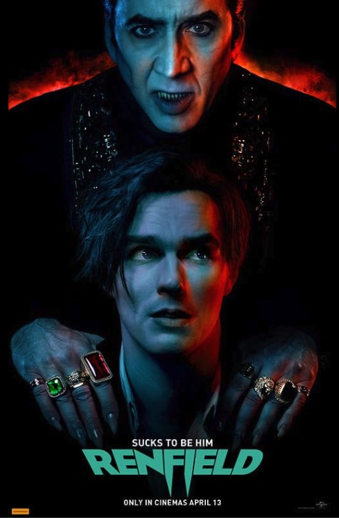 Our Renfield (Nicholas Hoult) after over a hundred of years of service, seems to be tiring of the job of keeping Count Dracula (Nicolas Cage) fed and cared for–a cycle which usually ends with Dracula’s near-demise, resurrection, and revitalization in a new city.