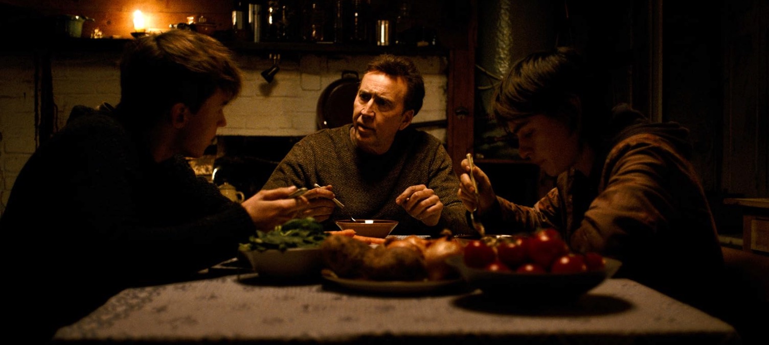 A man named Paul (Nicolas Cage) must survive an apocalyptic future America where environmental catastrophe (or some type of alien invasion) has given rise to a new species of predators that hunt by night and sleep by day. Paul is a father of twin boys, Thomas (Maxwell Jenkins) and Joseph (Jarden Martell), and he struggles to keep his adolescent sons safe by adhering to a strict schedule, fortifying his home against the Predators, and scavenging for food and supplies when the sun is highest in the sky.