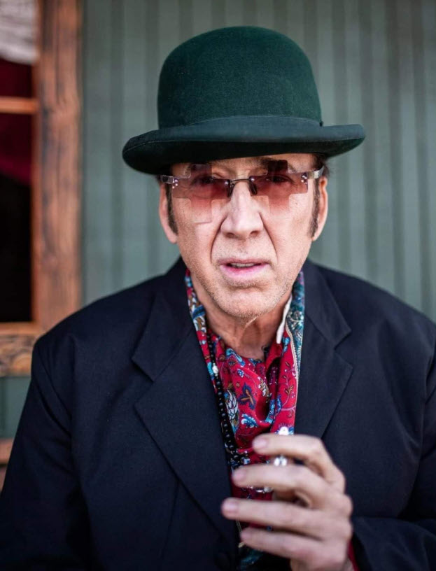 Ben (Nic’s character) really tries, too hard, to “breathe” some life into this catastrophe of a film—a straight to video affair that is easily mistaken for a CMT procedural. He overreaches by conjuring the spirit of a black gospel preacher, combined with glam rock star (e.g. cross-shaped shades), and a dash of Peaky Blinders (i.e. bowler hat) mixed in.