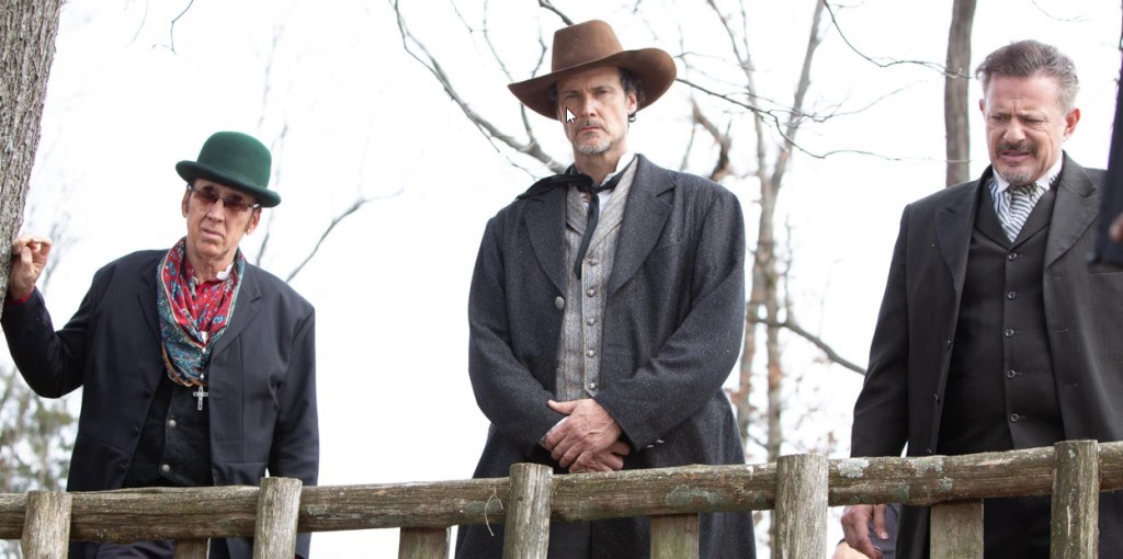 With his latest offering, Gunslingers, the Cagemeister really pushes past the wildly bizarre and entertaining into the totally absurd. It pains me to say it. In his defense, the script for this misguided western is kind of a mess. Much like his other westerns (The Old Way, Butcher’s Crossing) the story in Gunslingers is just missing some essential connection and key elements that matter to an audience. Everything feels flat, at times completely inane, and the action scenes are claustrophobic, dull, and predictable, much like the dialogue.