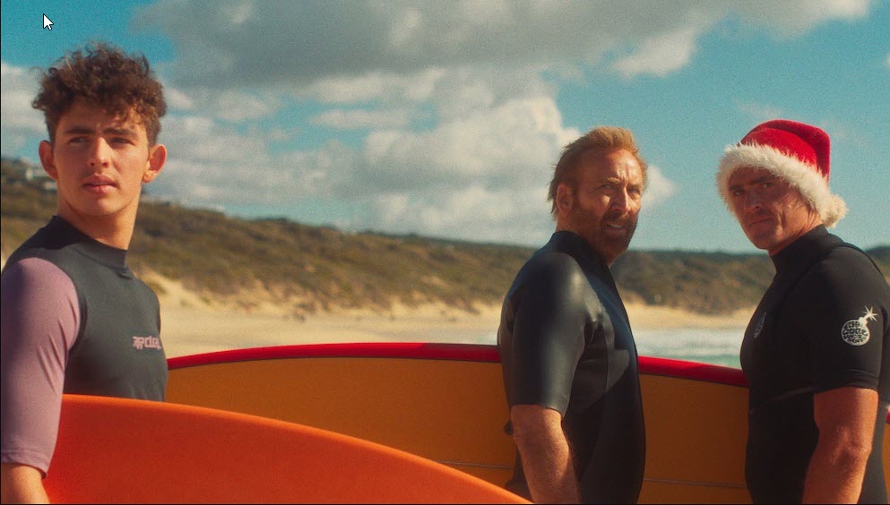 Our hero, Nicolas Cage plays an unnamed man, we’ll call him The Surfer, who is harkening back to his nostalgic youth spent surfing Luna Bay, an idyllic Australian beach. Wanting to return to this lost past and build new a bond with his (estranged) teenage son, The Surfer starts out in a desperate attempt to re-purchase his expensive family home which overlooks the pristine surf of Luna Bay. But it becomes apparent quickly that the Surfer’s goals of purchasing the pricey home, re-kindling the love and admiration of his son and ex-wife, and even getting to surf the big waves again, are going to be insurmountable obstacles for him to overcome.